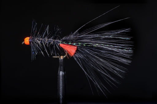 Meat Grinder Fly CoMeat Grinder Fly Co Dobbo's Dark Nights Cod and Trout striker fly tied on an Ahrex #6/0 Hook by Wade